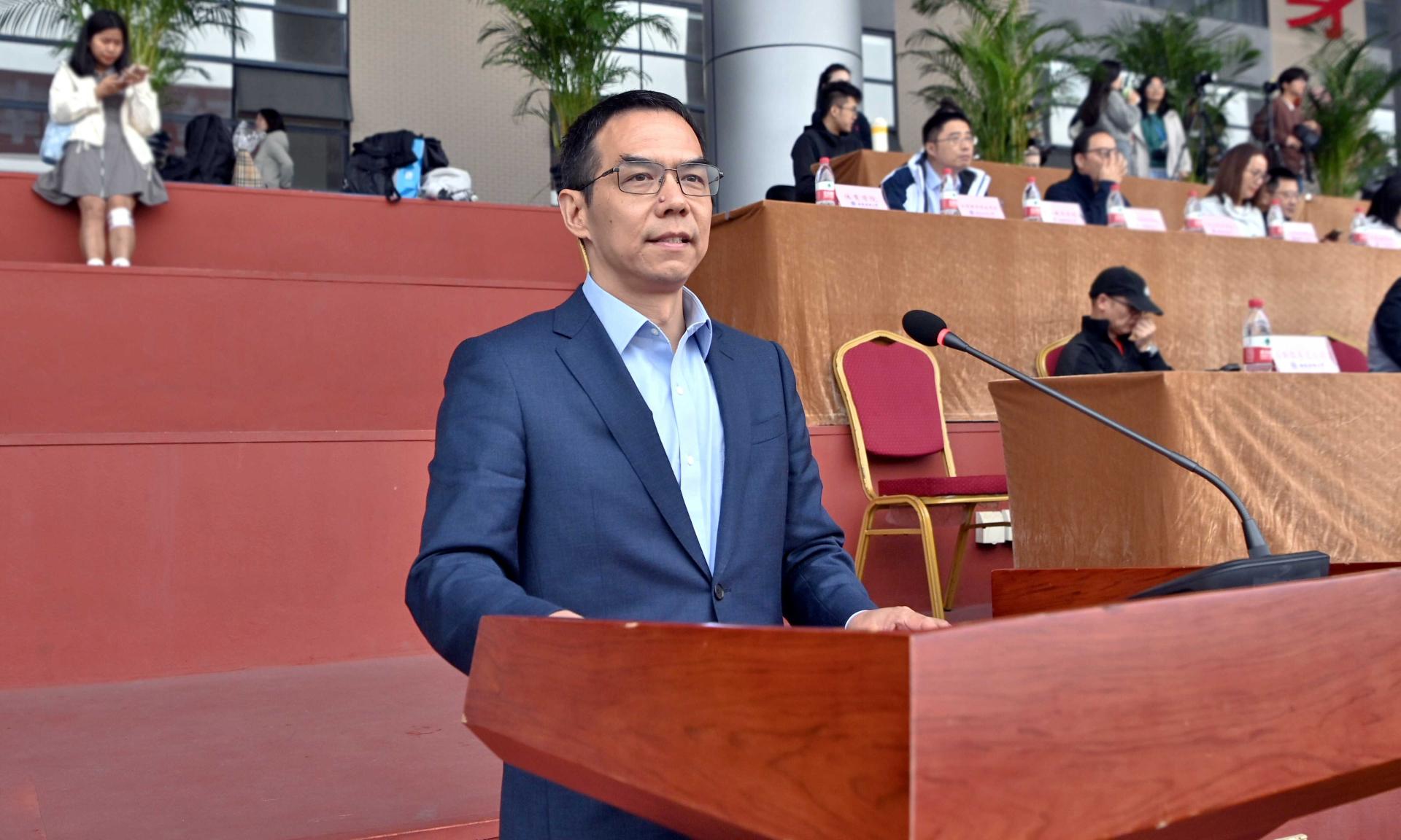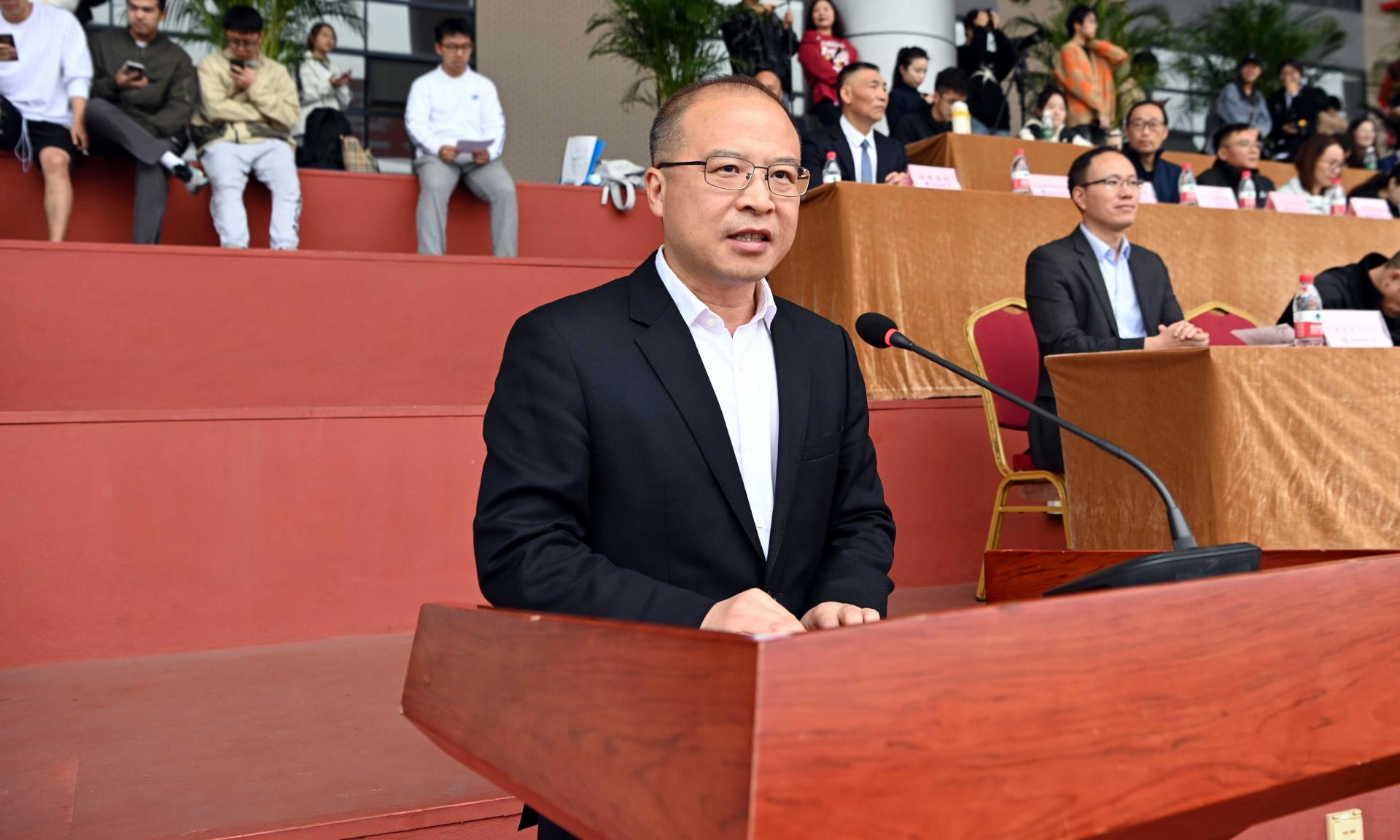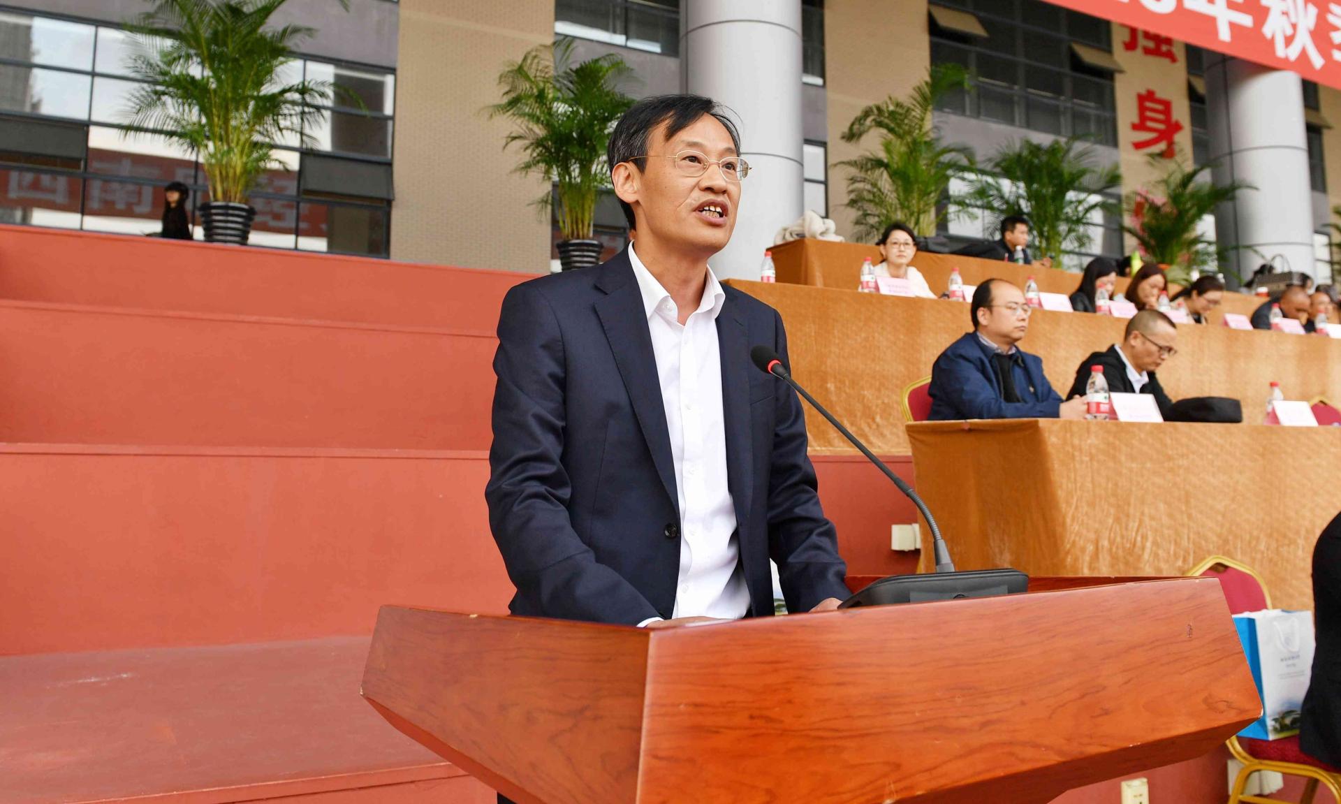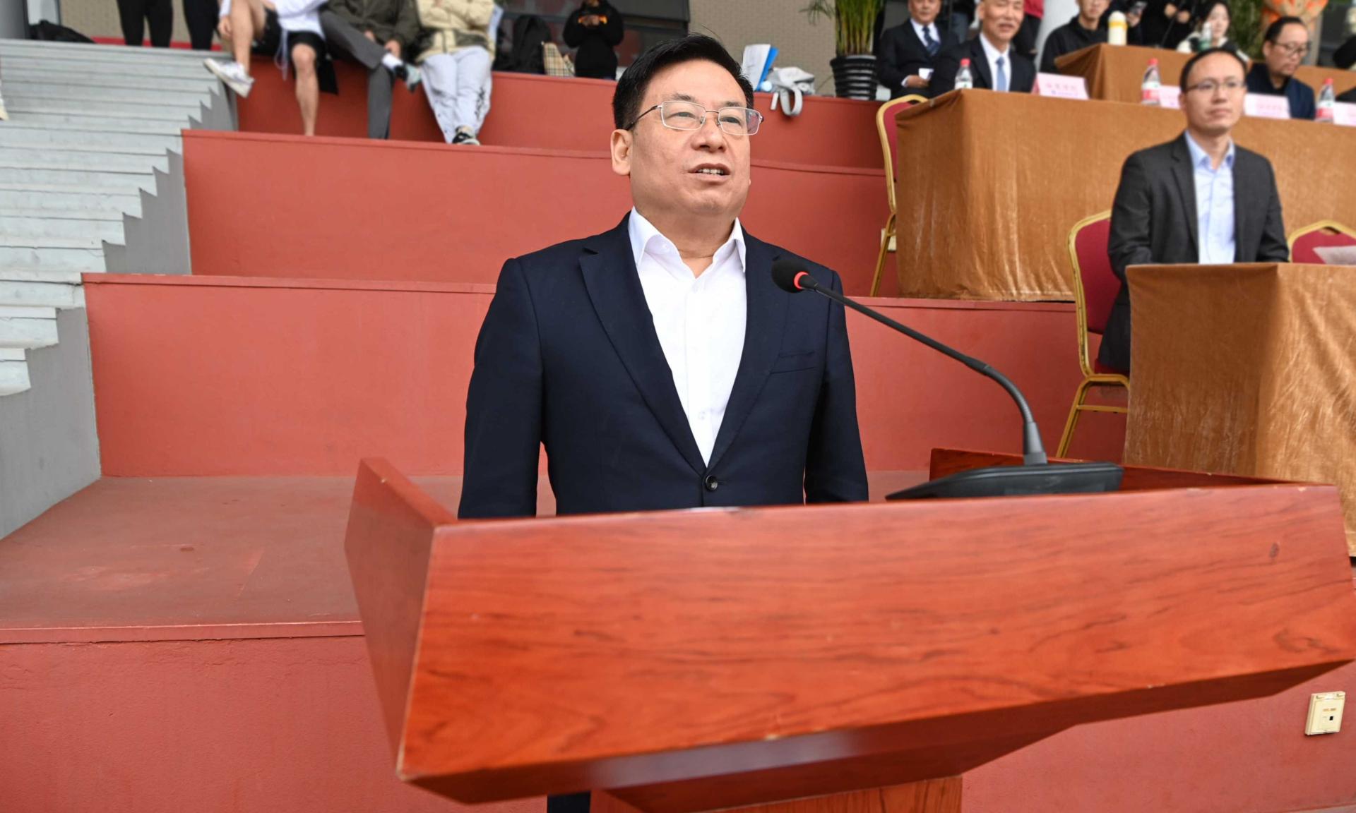 26日8时30分,运动会在晨曦运动场举行。赵德武宣布运动会开幕,李永强致开幕辞。李永强指出,体育是社会发展和人类进步的重要标志,承载着国家强盛和民族振兴的梦想;体育也是全面落实立德树人根本任务的基础性工程,在“五育并举”中前承德智、后接美劳,是承前启后的关键一环。学校高度重视体育工作和学生健康成长,把体育当作培养卓越人才的沃土,坚持“健康体育、快乐体育、终身体育”理念,着力构建“1+3乐动(中国)模式”,形成了“一校多品、一院一品、一社一品”体育教育新格局,实现了师生“育体”和学校“育人”的有机结合。李志生主持开幕式。