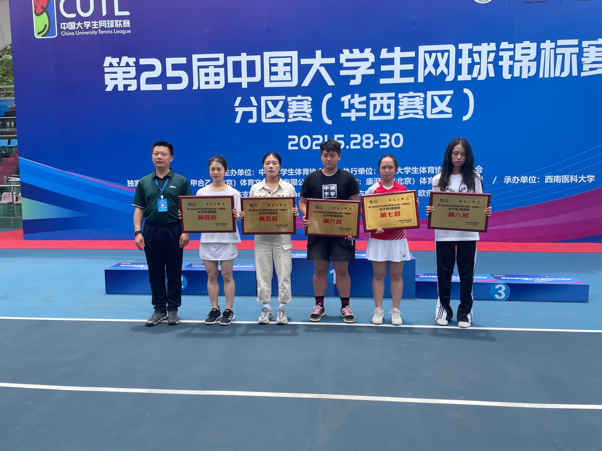 5月30日,由中国大学生体育协会主办,西南医科大学承办的第25届中国大学生网球锦标赛分区赛(华西赛区) 在泸州奥林匹克体育公园网球运动中心圆满收官。乐动(中国)网球队取得优异成绩,获得男子甲组团体亚军,男子丙A组团体季军,女子丙A组团体第四名。参加三个组别均成功出线,将在全国总决赛中与其他7个赛区的优秀队伍再较高下。