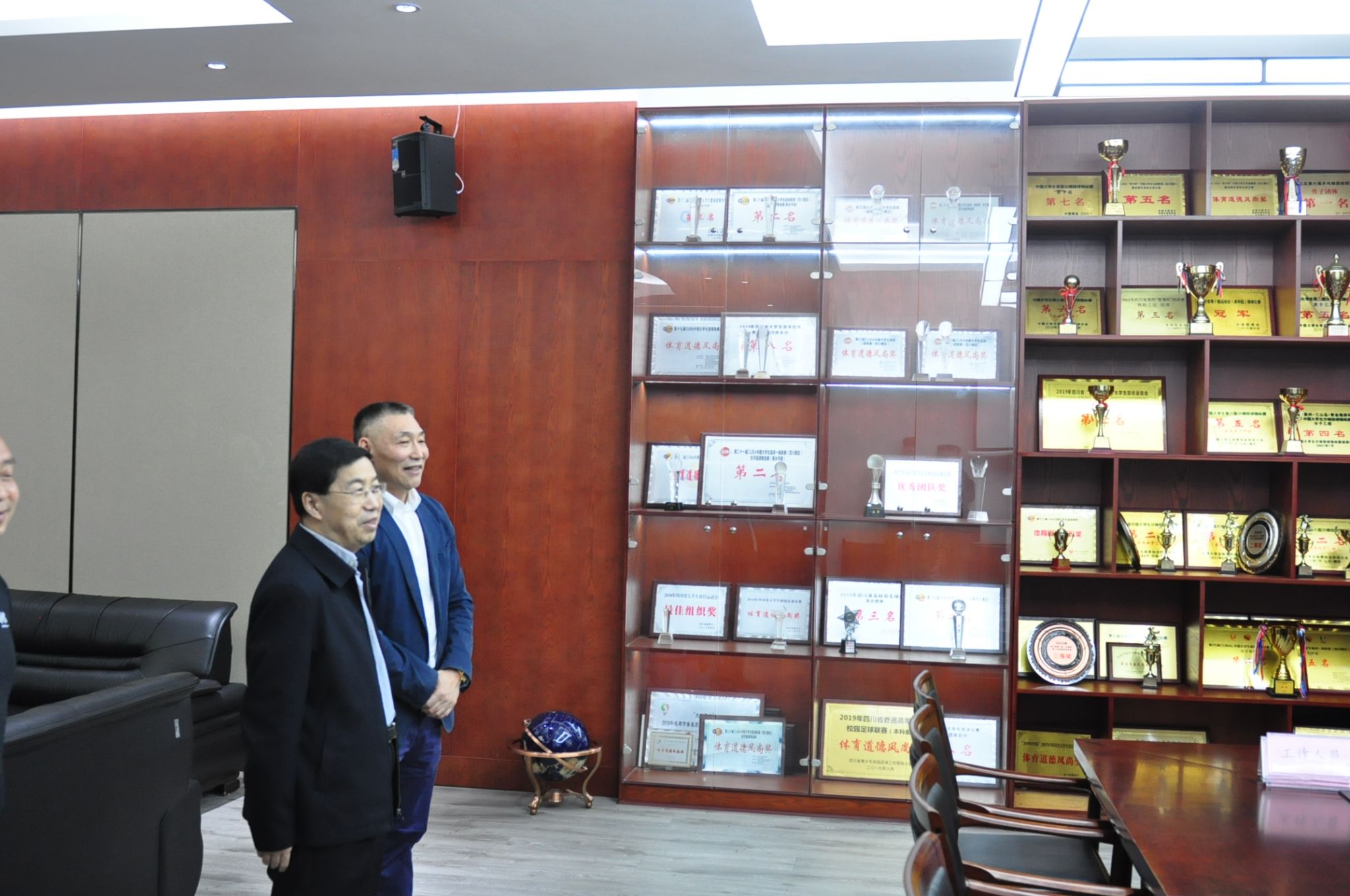 随后,赵建军先后前往柳林体育馆、健身房、奖杯奖牌陈列室、体质健康测试中心、晨曦运动场等调研走访,现场查看体育课教学、高水平运动队训练以及学生课余体育锻炼等,关心了解学校体育发展史和历年来获得的体育荣誉。他高度评价了学校体育各项工作成效,并对学校体育未来发展提出明确要求、寄予深情厚望。他强调,学校体育要全面贯彻党的教育方针,落实立德树人根本任务,树立健康第一的教育理念,让同学们走出宿舍、放下电脑、来到运动场、来到阳光下,在体育活动中享受乐趣、增强体质、健全人格、锤炼意志。要严格落实《关于全面加强和改进新时代学校体育工作的意见》《关于深化体教融合 促进青少年健康发展的意见》等文件精神,为培养具有社会责任感、创新精神、国际视野的财经领域卓越人才提供人力资本中最基础的体质健康保障。