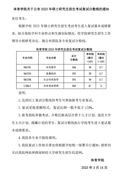 乐动手机平台关于公布2023年硕士研究生考试复试分数线的通知
