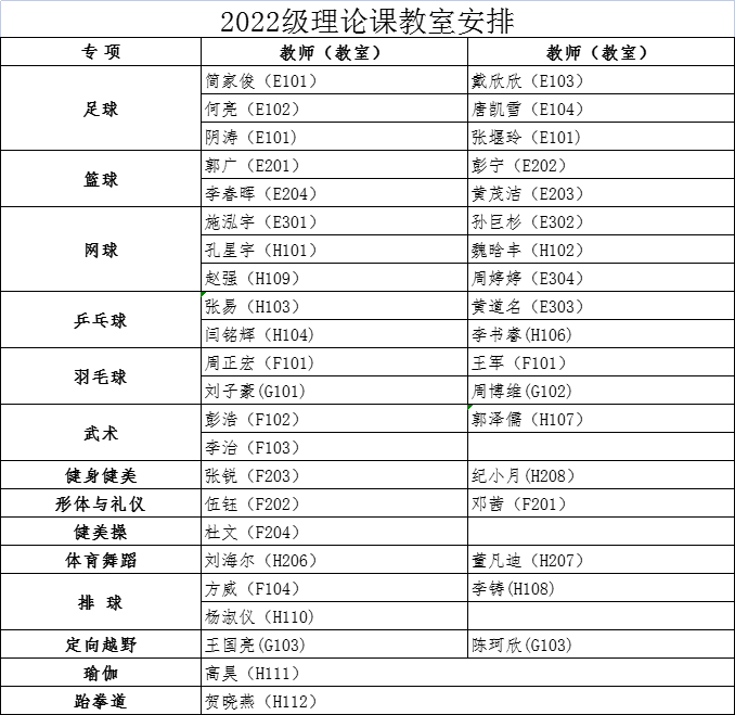各学院: 经教务处同意,本学期2022级本科生第1周体育课为乐动(中国)理论课,9月5日起恢复户外教学。根据教室资源状况,现将理论课具体安排通知如下: