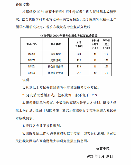 乐动手机平台关于公布 2024 年硕士研究生招生考试复试分数线的通知
