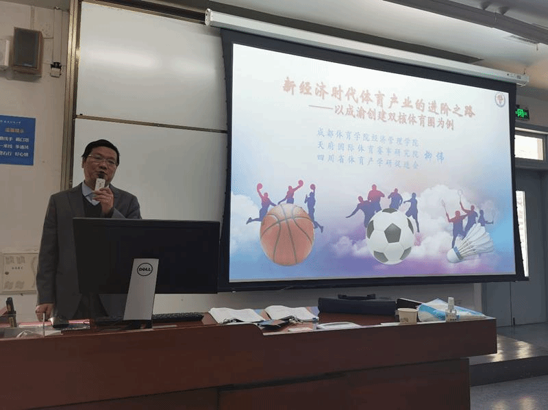 柳教授围绕我国体育产业发展现状、新经济时代体育产业的发展趋势、打通体育产业关键链和成渝创建双核体育圈的发展思路等深入浅出地进行了详细阐述,用新经济思想探索了成渝地区体育产业发展的新路径。