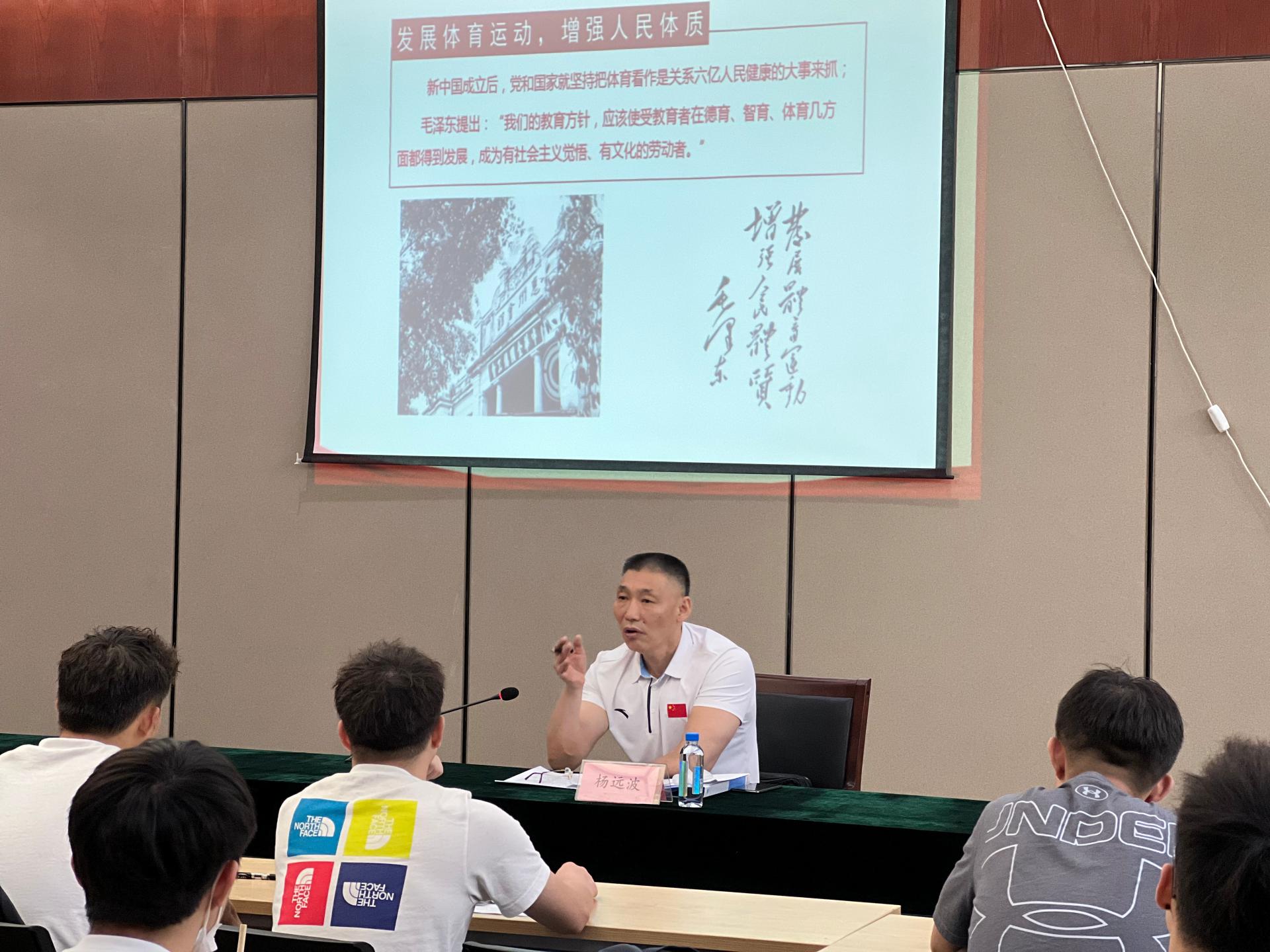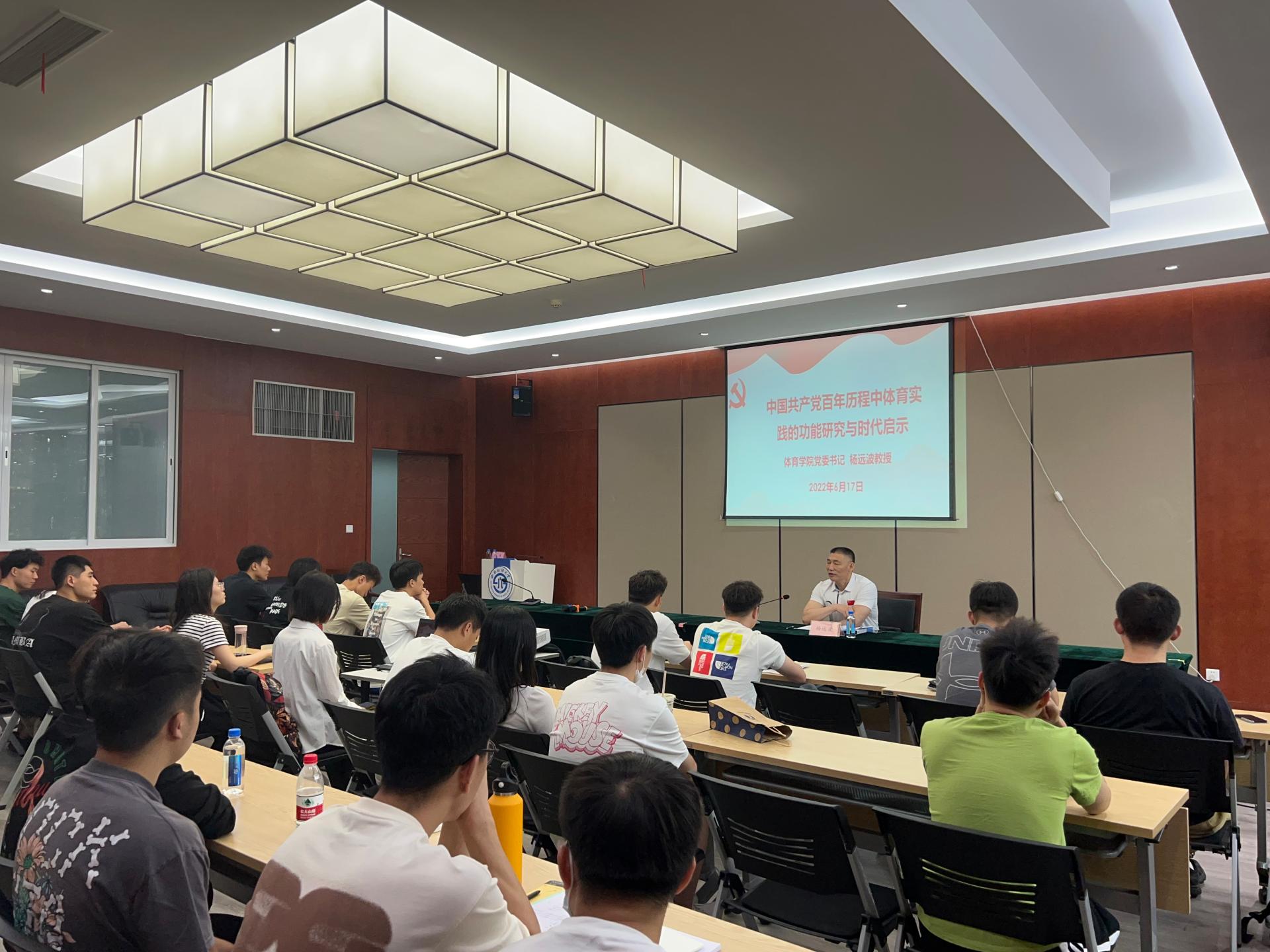 6月17日,乐动手机平台党组织书记杨远波在体育馆会议室为全体在校研究生开展了题为《中国共产党百年历程中体育实践的功能研究与时代启示》的专题思政理论课。